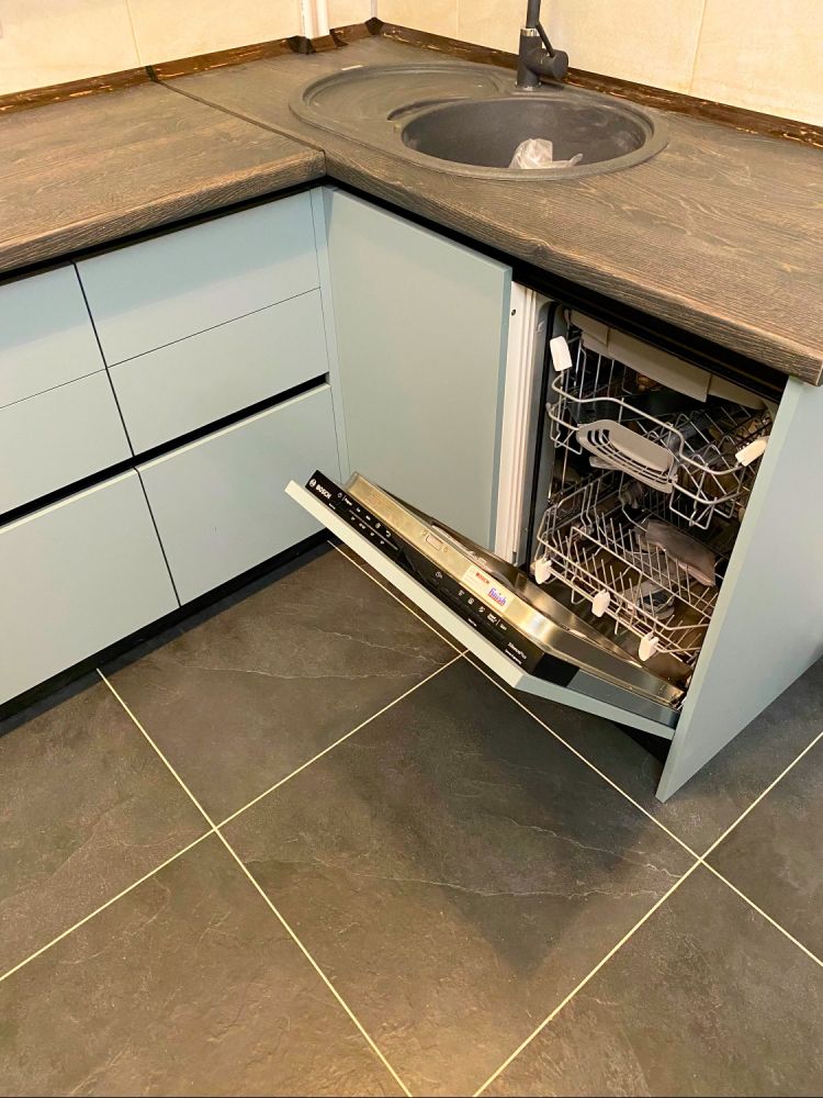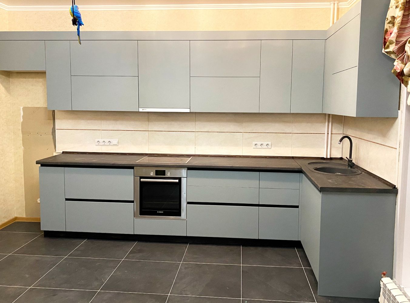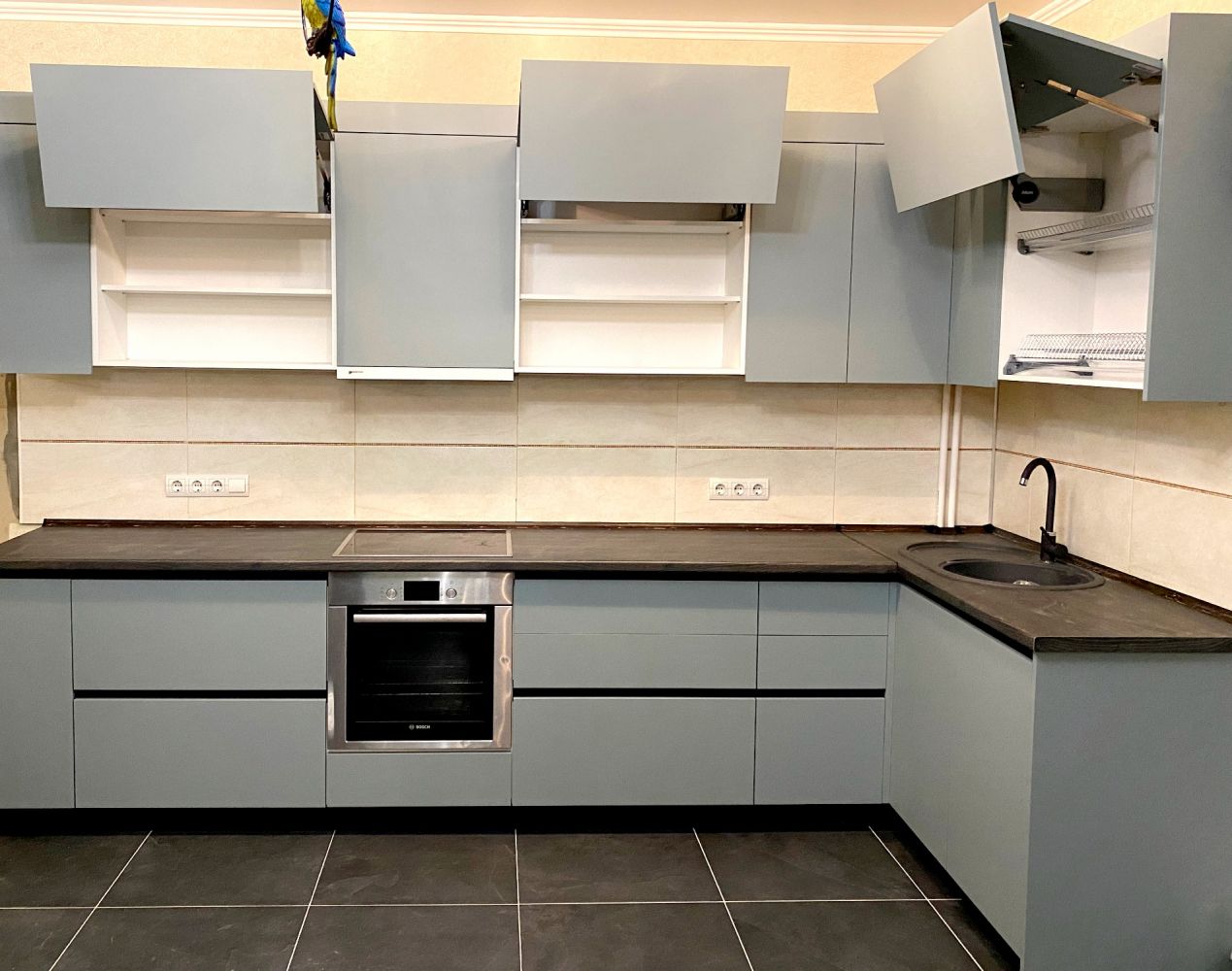Современная кухня выглядят гораздо дороже и интереснее без ручек, чем с ними. Есть у гладких фасадов и другие плюсы: Они визуально облегчают небольшое пространство. Фасады без ручек делают узкие проходы комфортнее. Для угловой кухни фасады без ручек хороши тем, что полностью исключают повреждение смежных поверхностей при открывании одного из угловых шкафов. Самый популярный вариант кухни без ручек – гарнитур со встроенными в каркас профилями Gola. Благодаря им роль ручек играют края самих фасадов.