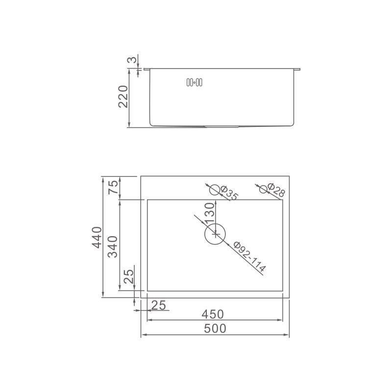 - Размеры мойки 50х44 см