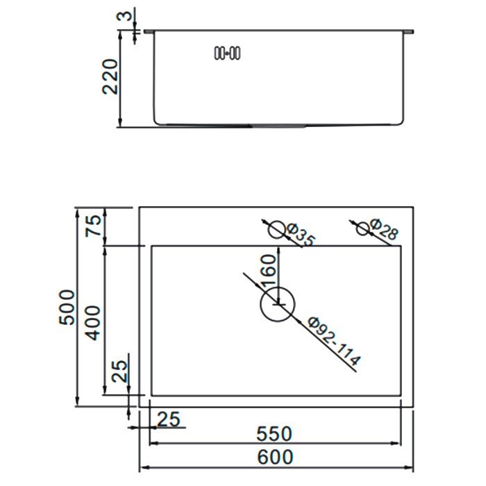 • Особенности корзинчатый вентиль, отверстие под кран-фильтр, отверстие под смеситель, сливная арматура
